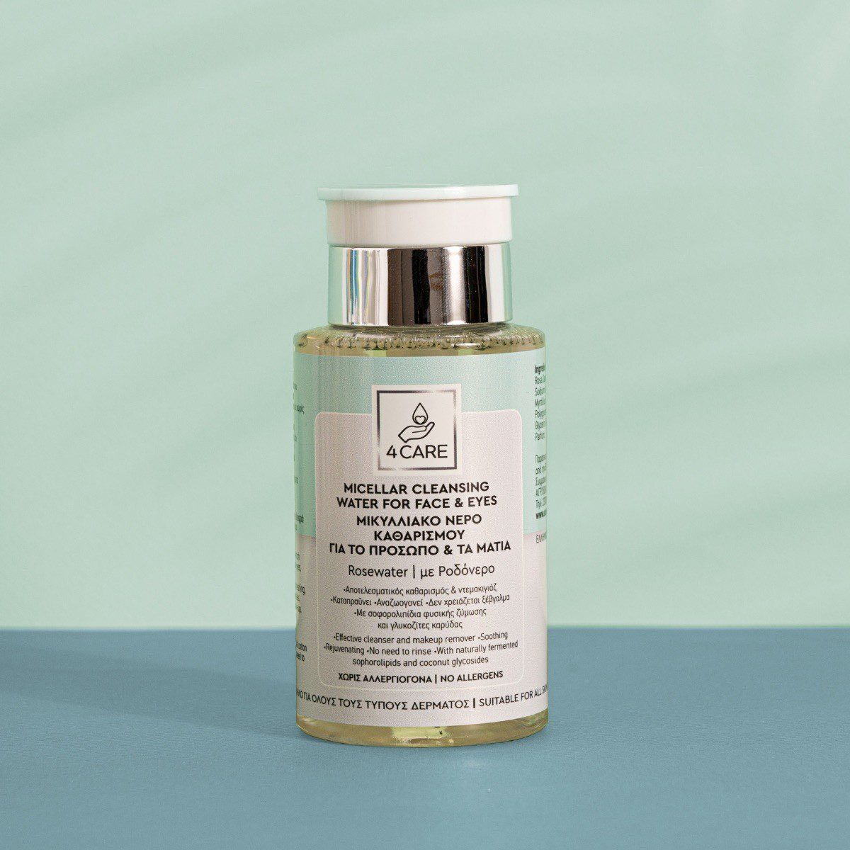 Μικυλλιακό Νερό καθαρισμού για το πρόσωπο και τα μάτια. Με ροδόνερο. Αποτελεσματικός καθαρισμός και ντεμακιγιάζ. Καταπραΰνει, Αναζωογονεί. Δεν χρειάζεται ξέβγαλμα. Με σοφορολιπίδια φυσικής ζύμωσης και γλυκοζίτες καρύδας.