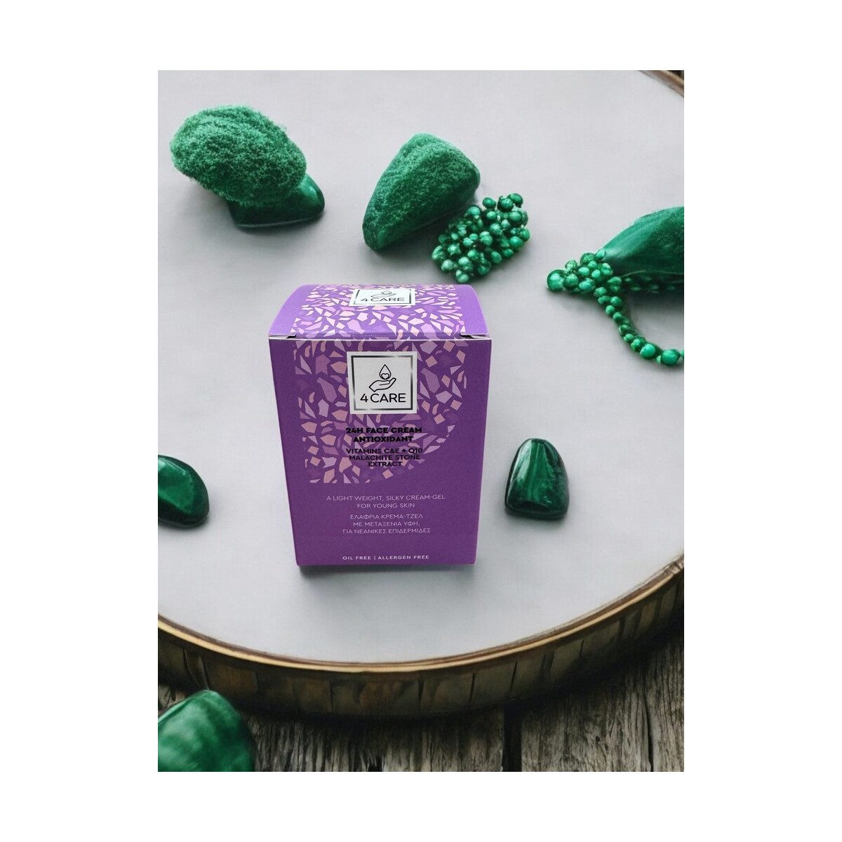 Eλαφριά κρέμα-τζελ με μεταξένια υφή, για νεανικές επιδερμίδες με Vitamins C&E + Q10,Malachite stone Extract.