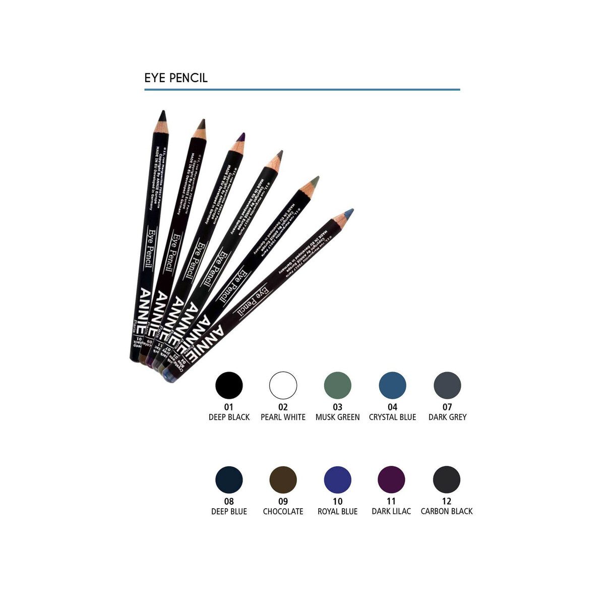 Τα μολύβια ματιών της Annie είναι πολύ μαλακά. Σας επιτρέπει να τονίσετε ή να αλλάξετε το σχήμα του ματιού σας πολύ εύκολα. Προσφέρουν μεγάλη ακρίβεια τόσο εκτός όσο και εντός της άκρης των βλεφαρίδων.