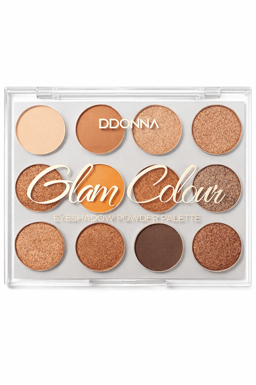 Παλέτα σκιών ματιών DDONNA Glam Colour με 12 έντονες αποχρώσεις σε ματ και shimmer υφή για εντυπωσιακά looks. Η βελούδινη σύνθεση απλώνεται εύκολα, προσφέρει έντονη χρωματική απόδοση και είναι ιδανική τόσο για καθημερινό όσο και για βραδινό μακιγιάζ.